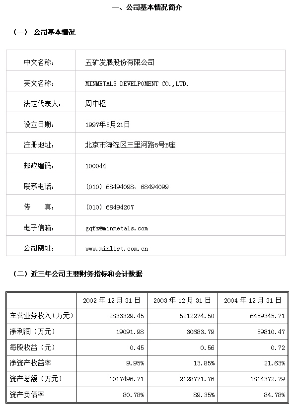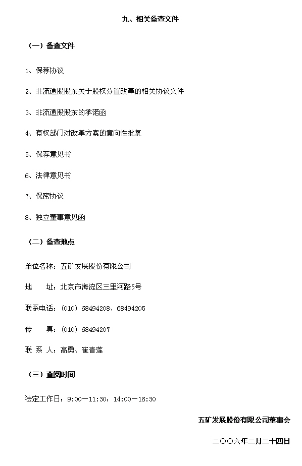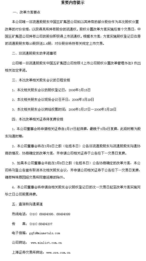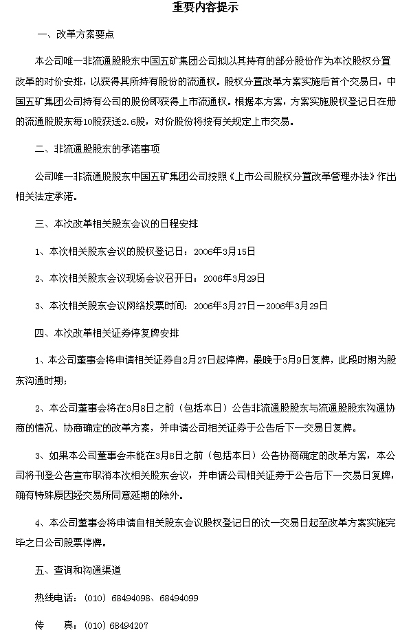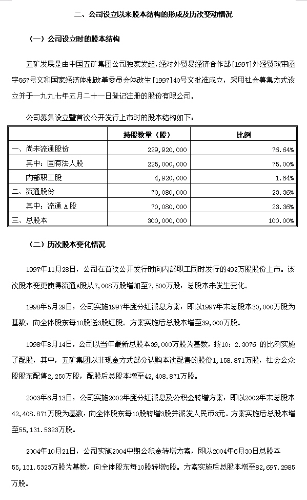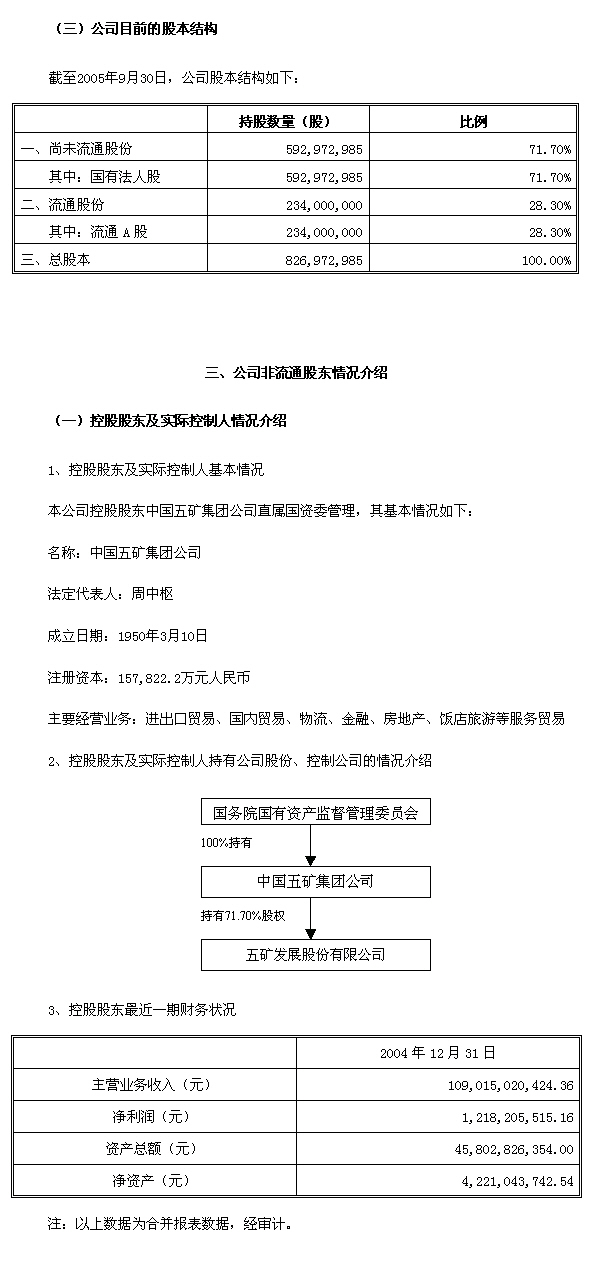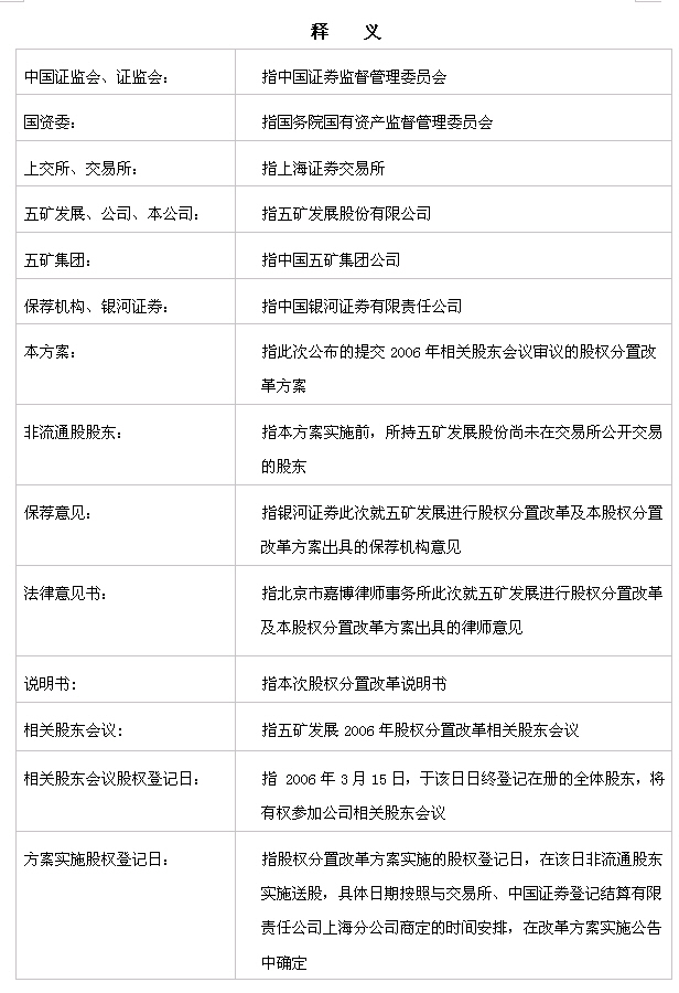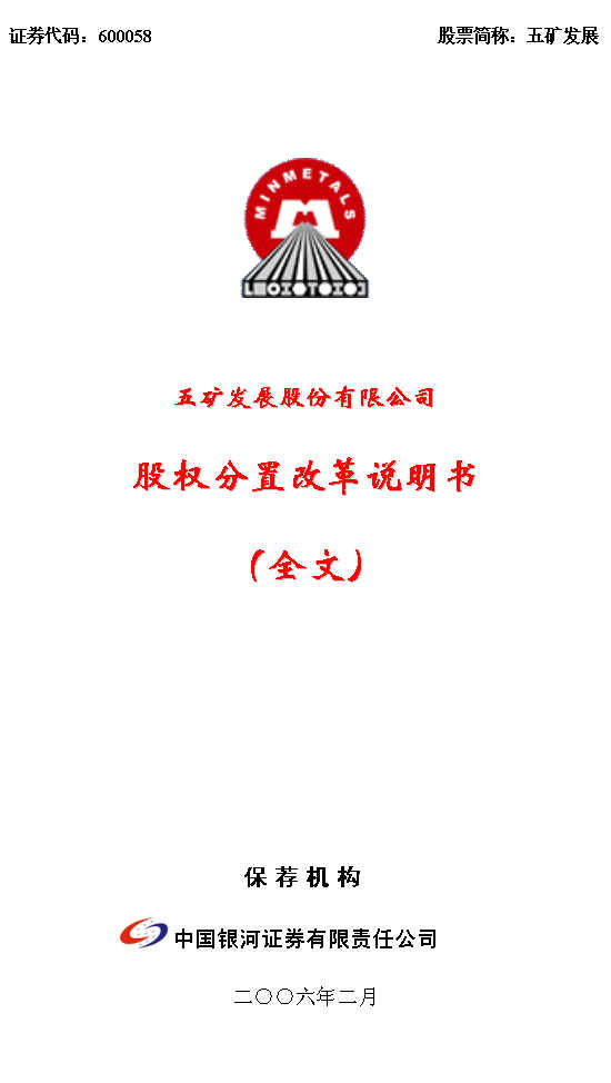 五矿发展股份有限公司股权分置改革说明书(全文)