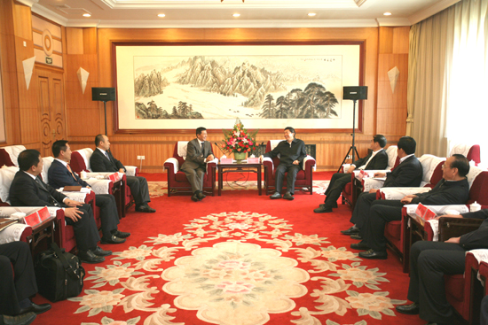 上午11点半,周总裁与青海省省长骆惠宁进行了会谈。骆省长感谢中国五矿在玉树地震发生后给予青海省的大力帮助,对周总裁的到来表示欢迎和感谢。他表示青海目前一手抓灾后重建,一手抓加快发展,他非常支持中国五矿在青海加大投资、推动当地经济的发展。周总裁表示,中国五矿与青海省的合作由来已久,从最早的贸易关系到地勘领域的合作再到金融业务,中国五矿与青海省的经济发展有很好的契合点,今后将加大与青海省在相关领域的合作。