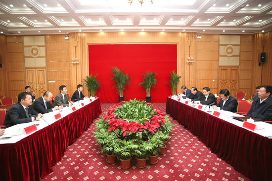 上午10点半,周总裁一行与骆玉林副省长在西宁市胜利宾馆举行了正式会谈,青海省发改委主任曹文虎、国土厅厅长刘山青以及经委主任张守成参加了会谈。周总裁在谈话中介绍了集团公司近年来转型发展的主要成绩,希望推动并深化与青海省的合作,集团公司把青海视作重要的战略合作省份,当前面临着两个机遇,一是中央推动西部大开发战略,二是按照中央对集团公司的要求,与青海省做好对接工作。骆副省长介绍了青海的相关政策和经济发展的主要方向,对集团公司在青海投资过程中严格遵守法律法规、履行社会责任表示了赞赏。双方就相关项目的推进和实施进行了深入的探讨和交流。