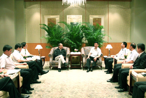 周总裁向姜副主席介绍了集团公司的发展历史、行业地位、“十一五”发展成绩、“十二五”发展目标以及在沪开展的业务情况,对上海市委市政府以及浦东区委区政府长期以来给予集团公司的大力支持表示感谢。他表示,当前,上海正在加快发展现代服务业和先进制造业,大力推进国际金融中心和国际航运中心建设,集团公司愿意参与到上海以及浦东新区的新一轮发展中来,希望双方进一步扩大和深化合作,力争互利共赢。