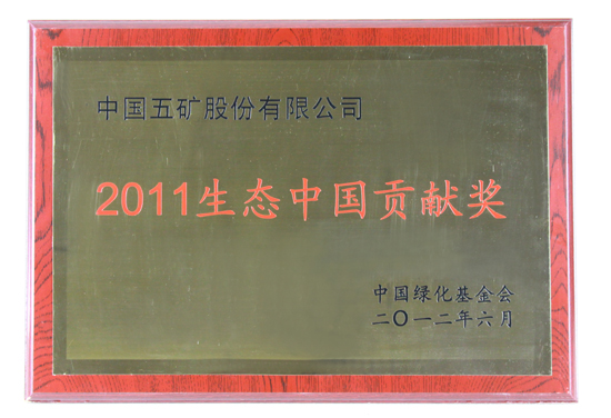 6月5日,由全国绿化委员会、国家林业局支持、中国绿化基金会举办的“2011绿色公益盛典”活动在全国政协礼堂举行,集团公司荣获“2011生态中国贡献奖”。中共中央政治局常委、全国政协主席贾庆林会见出席会议代表并做重要讲话。全国人大常委会副委员长布赫等出席会议和颁奖典礼。