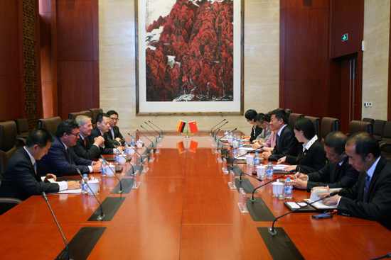 周总裁对于尔根•费琛一行的来访表示欢迎,对德银集团在银行界的地位表示肯定,高度评价了双方在项目合作中取得的阶段性成果。周总裁表示,在中德经贸关系长足发展的今天,中国五矿和德银集团的合作具有更加重要的意义,希望德银集团能够调动全球资源,协助中国五矿的项目实施,实现互利共赢。于尔根•费琛对周总裁的热情接待表示感谢,他表示尽管目前欧洲银行业依然存在困难,但德银集团仍保持着良好的发展势头,并对双方合作充满信心,德银集团将调集最好的团队和资源为中国五矿提供优质服务。双方还就其他领域的潜在合作交换了意见。