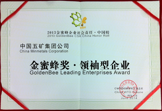 2014年6月5至6日,第九届中国企业社会责任国际论坛暨“2013金蜜蜂企业社会责任中国榜”发布典礼在京举行。集团公司荣获“2013金蜜蜂企业社会责任中国榜领袖型企业”。办公厅副主任王文海代表集团公司在论坛中发言并领奖。